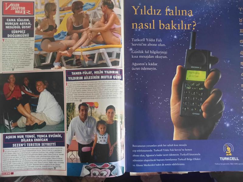 Alem Magazin Dergisi - 11 Ağustos 1999 - Berna Erten - Ahu Has - Yasemin Kamhi - Nadire Kalleci - Aslı Kehale - Yavuz Öngör - Bülent Ergin - Bahice Muhassıloğlu - Mustafa Toner - Lale Nişancı - Rlaf Tezman - Ah uTuğbay - Yasemin Kozanoğlu - Murat Murathanoğlu - Nilgün dumanlı - Güler Sabancı - Mehmet Civelek - Güllü Aybar - Gülay Kamaz - Aşkın Nur Yengi - Yonca Evcimik - Mehmet Gazioğlu - Zeynep Düvenci - Orhan Emirdağ - Vedat Allaton - Tunç Şardan - Varol Dereli - Caroline Koç - Şafak Kibar - Güliz Hasman- İnci Aksoy - Ümit Boyner - Yasemin Kozanoğlu - Zeynep Sabancı - Aslı Üstünkaya - Roksi Garih - Zeynep Çarmıklı - Aslı Berker - Merve Kurttepeli - Tansa Mermerci - Mine Verdi - Bettina Hakko - Çiğdem Kayalı - Duyguların Renklerinde Bir Defile - Cemil İpekçi - Aslan Kemal 4 Yaşında - Halikarnas'ta Doğumgünü - Monaco'ya Bir Prenses Daha - Çifte Dul Kraliçe - Şahin Büyükkaya - Rakette Rado İmzası fotoğraf ve haberi - Tam Takım Dergi Yıpranma, sararmalar, kupon kesiği ve yırtılmalar zamana bağlı olarak görülebilir