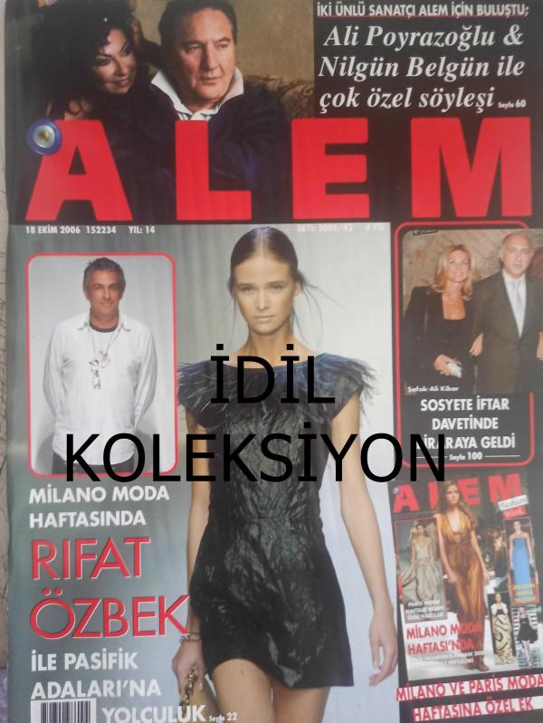 Alem Magazin Dergisi - 18 Ekim 2006 - Ali Kibar - Şafak Kibar - Rıfat Özbek - Dilek Ertek - Arzu Atabarut - Ahu Tuğbay - Afet Karacan - Aysun Kibar - Dalia Garih - Heves Ekinci - Duğçem Ekinci - Füsun Topbaş - Berna Tokar - Suzan Sabancı Dinçer - Verda Metin - Türkan Sabancı - Zeynep Sezer - Roksi Garih - Berrak Barut - Erhan Kamışlı - Verda Mahmiyas - Yasemin Pirinçcioğlu - Aygen Meseretçi - Binhan Kesici - Feride Donat - Sedat Sialom - Aydan Semker - Jale Öztarhan - Semra Tümay - Emine Özilhan - Esin Demirören - Semra Tümay - Yasemin Çuhadaroğlu - Eymen Demirören - Sema Basa - Gül Dürüst - Cana Sialom - Suna Özkanca - Ayfer Toprak - Nilgün Özköseoğlu - Dilek Ertek -Seval Başaran - İhsan Şentürk - Ali Poyrazoğlu - Nilgün Belgün - Nil Bentürk - Berna Gürel - Sibel İlkiz - Mine Kalpakçıoğlu - Nurettin Hasman - Eda Taşpınar fotoğraf ve haberi - Tam Takım Dergi Yıpranma, sararmalar, kupon kesiği ve yırtılmalar zamana bağlı olarak görülebilir