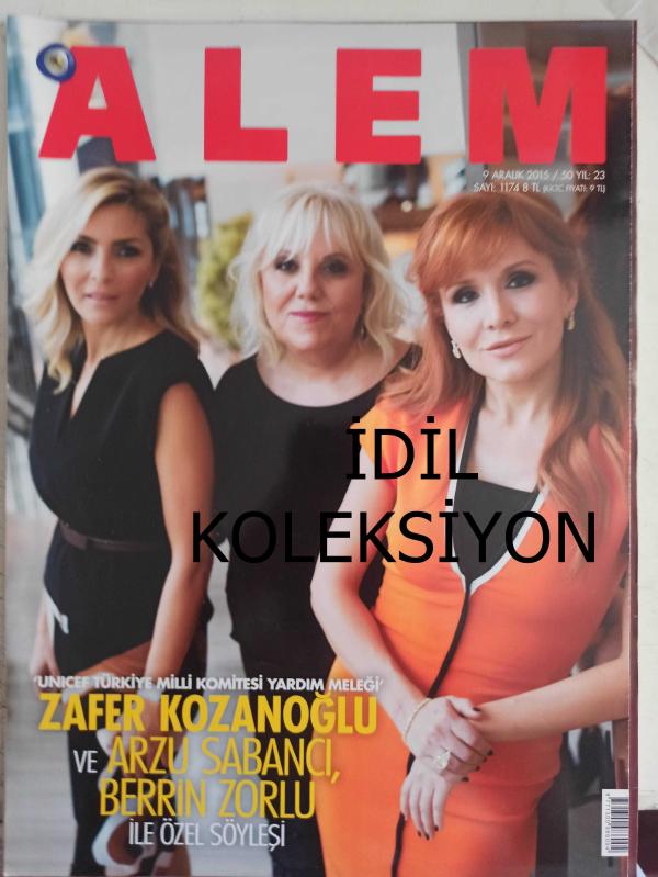 Alem Magazin Dergisi - 9 Aralık 2015 - Zafer Kozanoğlu - Arzu Sabancı - Berrin Zorlu - Rıfat Elhadef - Romina Hakko - Şirin Yalçın - Mine Narin - Zeynep Fadıllıoğlu - Çiğdem Kamer - Heves Ekinci - Ayşegül Toplusoy - Zeynep Üstünel - Özdem Gürsel - Şirin Yalçın - Aliye simavi - Siren Ertan - Renee Saban - Yelda Demirören - Hande Kunaçav - Nebahat Çehre - Aslı Şen - Aslı Ersu - Aslı Hüseyrioğlu - Tilda Tezman - Burcu Ziyal - İpek Köse - Sanem Tezman - Buket Taşdelen - Melda Kosif - Eva Maçero - Arzu Atabarut - Serra Türker - Feryal Gülman - Didem Antebi - Ayşe Torfilli - Pınar Altuğ - Evin Şaşmaz - Mine Kalpakçıoğlu - Ceylan İnsel - Selin Tara - Sibel Karakaşlı - Servet Koçak - Esin Özbek - Füsun Topbaş - Canan Başarır - Begüm Ayaydın - Aylin Yılmaz - Deniz Berdan - Ceylan Çapa - Pınar Özçapkın - Nergis Pekuysal - Mahbube Gürkan - Elif Gönlüm - Selda Vural - Sitare Akdilek fotoğraf ve haberi - Tam Takım Dergi Yıpranma, sararmalar, kupon kesiği ve yırtılmalar zamana bağlı olarak görülebilir