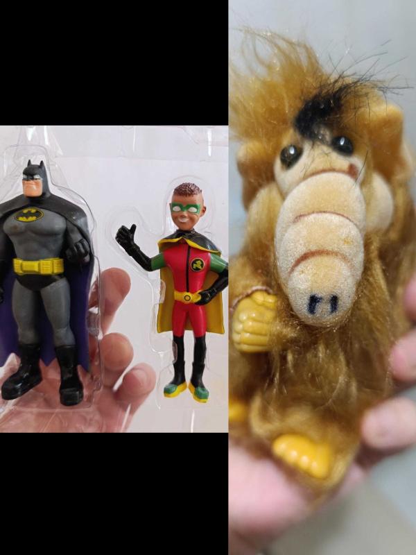 Alf peluş Maskot Batman Robin figür oyuncak süs dekor koleksiyon nostalji tasarım vintage retro hobi reklam promosyon minyatür diorama başlıklı antika/koleksiyon objesinin menşei belirtilmemiştir. Objenin ait olduğu dönem bilinmeketedir.