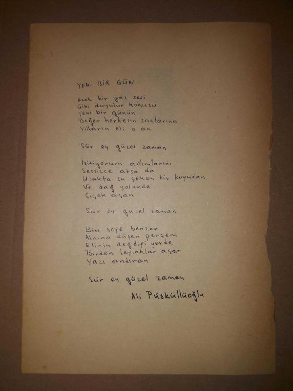 Ali Püsküllüoğlu - el yazısı şiir - Yeni Bir Gün (Tıpkıbasım), en son 2 ay önce güncellenmiştir.