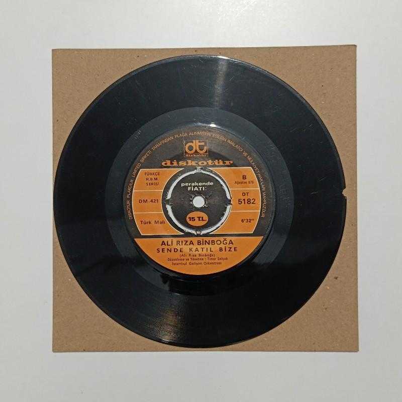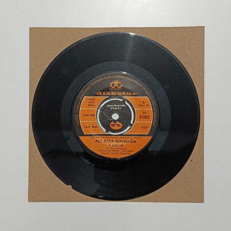 şarkıcı/grup-Ali Rıza Binboğa şarkılar -Yarın - sen de katıl bize tür -ÖZGÜN/PROTEST baskı/press -1975 plak -7-7,5/10(şarkıya girmeden 1cm kılcal çatlak var) kapak -koruma zarfında MPN no -DT-5182 bilgi -