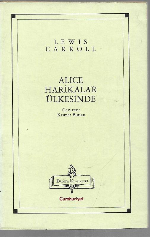 Alice Harikalar Ülkesinde, Lewis Carroll tarafından kaleme alınmıştır. Kitap 1998 yılında Cumhuriyet Kitapları tarafından [İstanbul] yayınlanmıştır. Bu baskının çevirisi Kısmet Burian tarafından yapılmıştır. 127 sayfadır. Alice Harikalar Ülkesinde adlı eser Türkçe dilindedir.