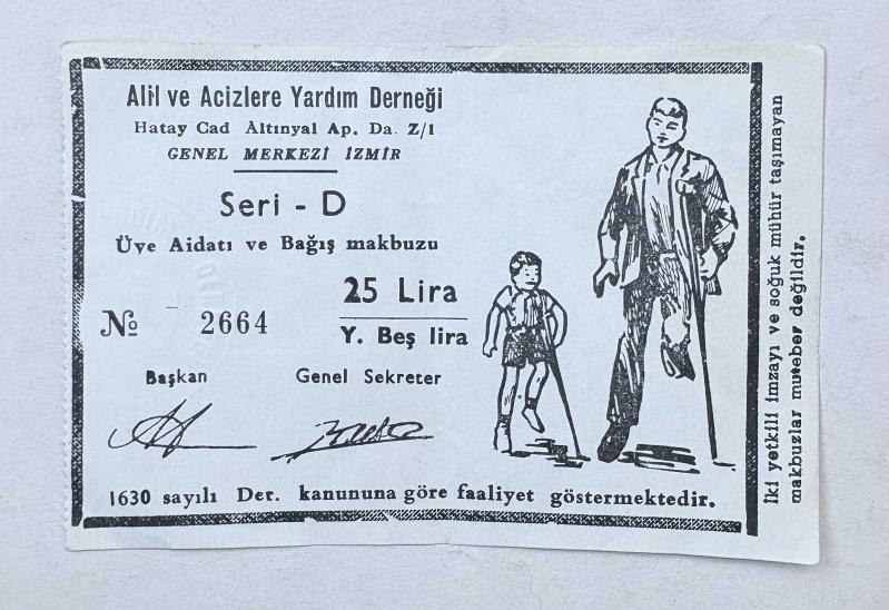 Alil ve Acizlere Yardım Derneği İzmir Yardım Makbuzu, bir ay önce satışa sunulmuştur.