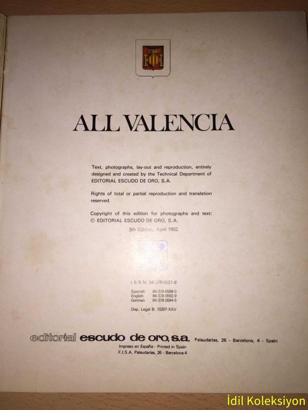 All Valencia : 114 Colour Photographs - Editorial Escudo De Oro - İngilizce Kitap (Tüm Valencia : 114 Renkli Fotoğraf) Kapakta Hafif Yıpranma Mevcut