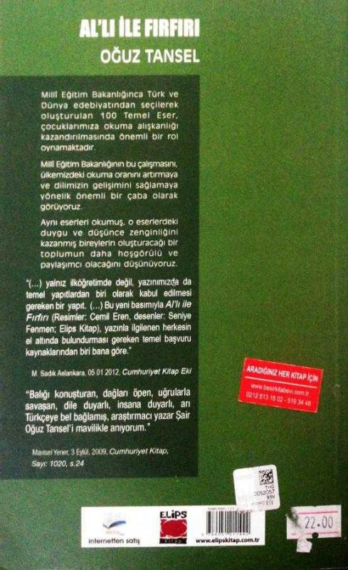 Al'lı İle Fırfırı, Oğuz Tansel tarafından kaleme alınmıştır. Kitap 2014 yılında Elips tarafından yayınlanmıştır. 375 sayfadır. Al'lı İle Fırfırı adlı eser Türkçe dilindedir.