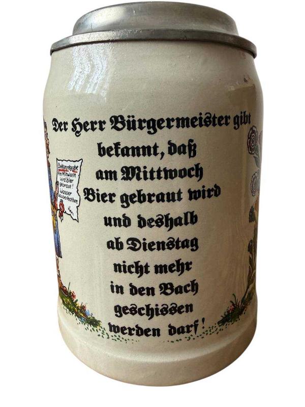 Almanya’nın geleneksel mizah anlayışını ve bira kültürünü bir araya getiren bu özel tasarım ALMAN TANKART BARDAK, üzerinde yer alan uzun Almanca yazı ile dikkat çeken eşsiz bir parçadır. Hem dekoratif hem de koleksiyon değeri taşıyan bu ürün, klasik formu ve nostaljik yapısıyla öne çıkar. Bardak üzerinde yer alan Almanca metin: “Der Herr Bürgermeister gibt bekannt, daß am Mittwoch Bier gebraut wird und deshalb ab Dienstag nicht mehr in den Bach geschissen werden darf!” Bu ifade, eski dönemlere ait mizahi bir duyuruyu temsil eder ve ürüne özgün bir karakter kazandırır. Seramik gövdesi sayesinde dayanıklı ve uzun ömürlü kullanım sunan bu SERAMİK TANKART BARDAK, geleneksel Alman bira kupası formunu yansıtır. Otantik görünümü ile hem günlük kullanım hem de dekoratif amaçlı tercih edilebilecek özel bir üründür. 🍺 Ürün Açıklaması Klasik Alman bira kültüründen ilham alan bu ALMAN BİRA KUPASI, nostaljik tasarımı ve dikkat çekici yazı detayı ile bulunduğu ortamda fark yaratır. Üzerindeki Almanca yazı sayesinde sıradan ürünlerden ayrılan bu model, koleksiyon meraklıları için oldukça değerli bir KOLEKSİYON BİRA BARDAĞI niteliği taşır. Estetik görünümü ile ön plana çıkan bu DEKORATİF BİRA BARDAĞI, ev, ofis, bar veya kafe dekorasyonlarında kullanılabilecek şık bir parçadır. Aynı zamanda Almanya temalı hediyelik arayanlar için anlamlı bir ALMANYA HATIRA BARDAĞI olarak da tercih edilmektedir. Geniş hacmi ve ergonomik yapısı ile kullanışlı bir BÜYÜK BOY BİRA BARDAĞI olan bu ürün, otantik tarzı ile OTANTİK BİRA BARDAĞI kategorisinde öne çıkar. Bar konseptine farklı bir hava katmak isteyenler için ise ideal bir BAR DEKORASYON BARDAĞI seçeneğidir. 📌 Ürün Özellikleri • Ürün Türü: ALMAN TANKART BARDAK • Malzeme: Seramik • Yükseklik: 13,5 cm • Alt Çap: 10 cm • Üst Çap: 8,5 cm • Ağırlık: 740 gr • Tasarım: Almanca yazılı, klasik tankart form • Form: Orta – büyük boy (BÜYÜK BOY BİRA BARDAĞI) • Kullanım: Dekoratif ve içecek servisine uygun • Kategori: NOSTALJİK BİRA BARDAĞI / ALMAN BİRA KUPASI 🎯 Kimler İçin Uygun? • Alman bira kültürüne ilgi duyanlar • Nostaljik ve vintage ürün koleksiyoncuları • Farklı tasarımlara sahip KOLEKSİYON BİRA BARDAĞI arayanlar • Ev, ofis veya kafe dekorasyonuna özgün dokunuş katmak isteyenler • Anlamlı ve dikkat çekici hediye arayanlar • Almanya temalı ürünlere ilgi duyanlar ⚠️ Önemli Bilgilendirme Bu ürün nostaljik/vintage kategorisinde değerlendirilebilir. • Yüzeyinde hafif kullanım izleri veya üretimden kaynaklı detaylar bulunabilir • Bu durum ürünün NOSTALJİK BİRA BARDAĞI karakterini destekler • Kusur değil, ürünün otantik yapısının bir parçasıdır 🔒 Ürün Güvenlik Bilgisi • Seramik malzemeden üretildiği için darbelere karşı hassastır, düşürülmemelidir • Çocukların erişemeyeceği yerde muhafaza edilmelidir • Sıcak ve soğuk ani değişimlerden korunmalıdır • Bulaşık makinesinde yıkanması önerilmez, elde temizlenmelidir • Gıda ile temas için uygundur, ancak uzun süreli kullanım sonrası temizliği ihmal edilmemelidir • Uzun ömürlü kullanım için nazik kullanım tavsiye edilir
