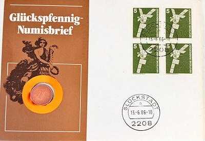 Almanya 1 Pfennig 1984 ÇİL, Postadan Geçmiş Pullu Damgalı Zarfında
