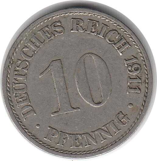 Almanya 10 Fenik 1911 Çok Temiz