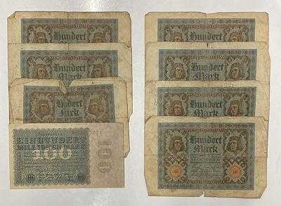 Almanya, 100 Mark, 1920/1923, p69; p107, (Toplam 8 adet banknot) TEMİZ ile ÇT arası farklı kondüsyonda., 2 ay önce satışa sunulmuştur.