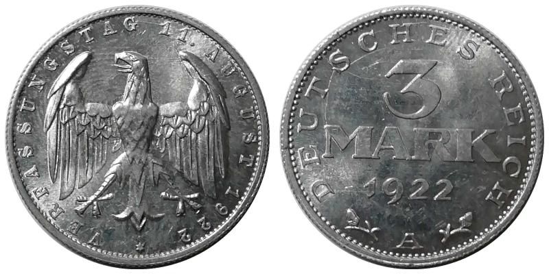 Almanya 1922 Yılı 3 Mark ÇİL, bir ay önce satışa sunulmuştur.