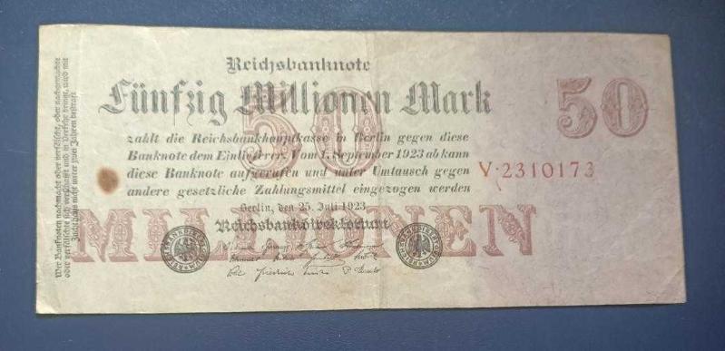 Almanya 1923 50 Milyon Mark, 2 ay önce satışa sunulmuştur.