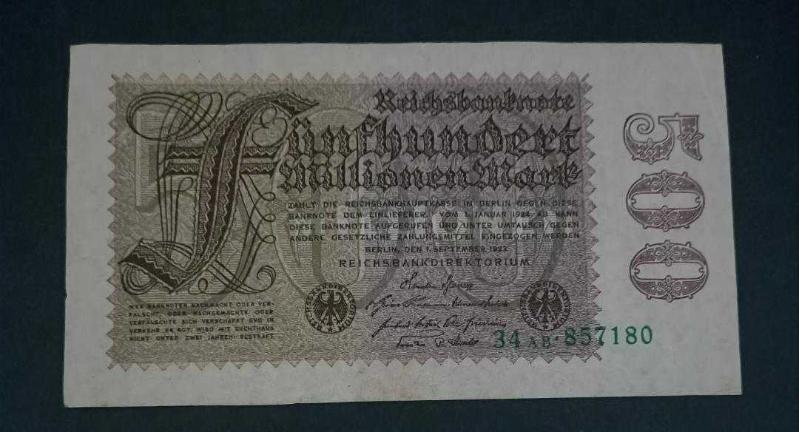 Almanya 1923 500 milyon Mark Çil altı, 15 gün önce satışa sunulmuştur.