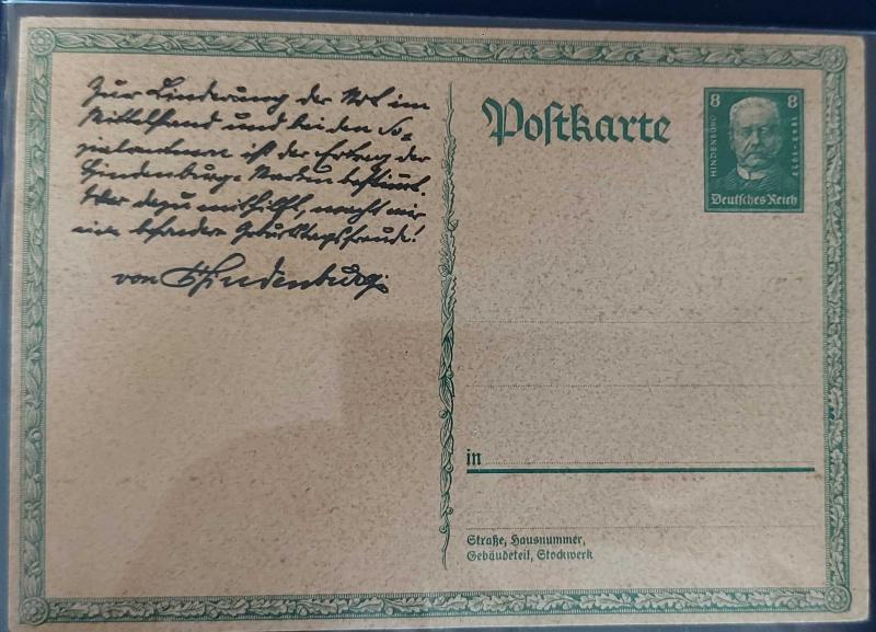 Almanya 1927 Reich Hindenburg'un Doğum Günü Hindenburg'un el yazısı baskılı damgasız nadir, 6 gün önce satışa sunulmuştur.