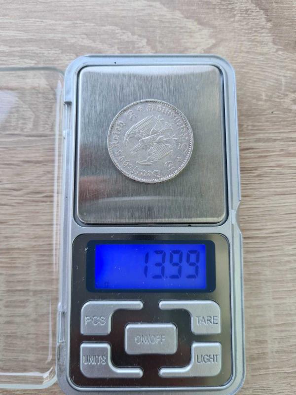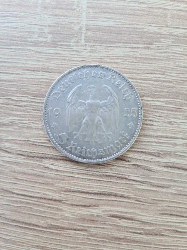 Ülke / Dönem: Nazi Almanyası (Üçüncü Reich) Yıl: 1935 Nominal: 5 Reichsmark Tip: Arka yüzde Potsdam Garnizon Kilisesi (Garnisonskirche) tasarımlı sirkülasyon parası Alaşım: Ag 0.900 (%90 gümüş) Ağırlık (resmî): 13.99 g Saf gümüş içeriği (ASW): ≈ 12.5–12.6 g (0.4019 oz) Çap: ~29 mm Kenar yazısı: “Gemeinnutz geht vor Eigennutz” (kenar yazılı) Darphane harfi: Ters yüzde kilisenin altında küçük harf vardır (A/D/E/F/G/J). Kondisyon: Her iki yüzde de detaylar belirgin; alanlarda dolaşım kaynaklı matlaşma mevcut. Kartal tüyleri ve portre çevresinde aşınma görülüyor, kilise detayları okunur. Kenarlar düzgün, doğal gri patina korunmuş. Derece (yaklaşık): VF / VF+ (Orta–Üzeri). Orijinallik: Ağırlık ve alaşım dönem standardı ile uyumlu Çap ~29 mm, kenar yazısı net; mıknatıs tutmuyor. Orijinal darphane baskısıdır, reprodüksiyon değildir. Neden Koleksiyonluk? %90 gümüş içerik + kenar yazılı güvenlik detayı 1930’lar Alman para sisteminin en bilinen tiplerinden Garnizon Kilisesi tasarımı daha nadirdir Hem tarih hem gümüş yatırımı odaklı koleksiyonlara uygun