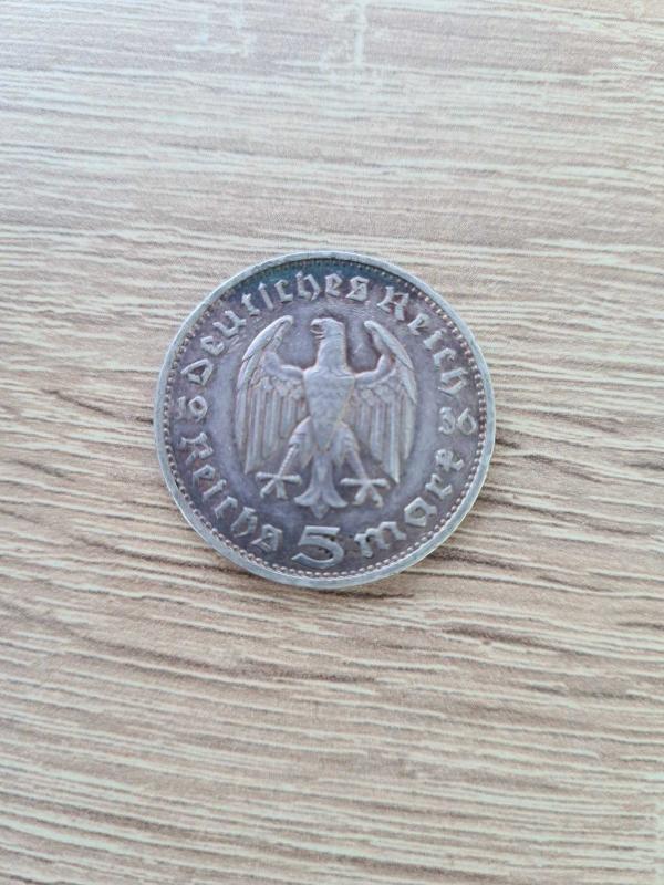 Almanya 1936 – 5 Reichsmark Hindenburg (%90 Gümüş, 13.83 g) • Orijinal, 3 gün önce satışa sunulmuştur.