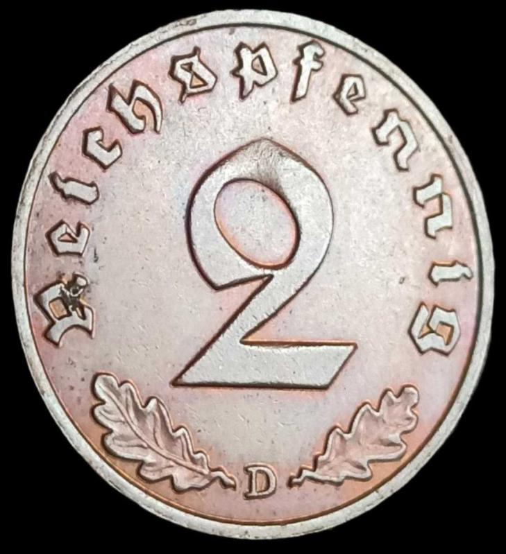 Almanya 1937 D Adolf Hitler Dönemi 2 Reichspfenig Çil 3.30gr