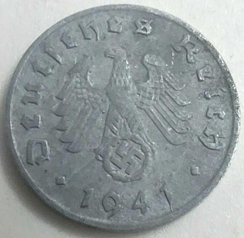Bu 1941 tarihli 1 Reichspfennig, Üçüncü Reich'ın savaş ekonomisinin nümismatik bir yansımasıdır. Savaşın genişlemesiyle birlikte bronz gibi değerli metaller askeri mühimmat üretimine kaydırıldığı için, bu dönemdeki ufaklık paralar tamamen çinko metalinden dökülmüştür. Paranın ön yüzünde (obverse), pençeleriyle meşe çelengi içindeki simgeyi kavrayan Kartal (Reichsadler) figürü; arka yüzünde (reverse) ise nominal değer "1" yer alır. Çinko malzemenin kendine has mat ve koyu gri tonu, o yılların sert ve kasvetli atmosferini koleksiyonlara taşır. 1941 baskısı, savaşın lojistik yükünün arttığı bir dönemi temsil etmesi açısından tarihi öneme sahiptir.