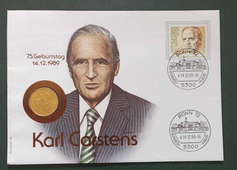 Almanya 1989 Altın kaplama 1 Mark Karl Corstens 75'inci Doğumgünü hatıra özel gün pullu