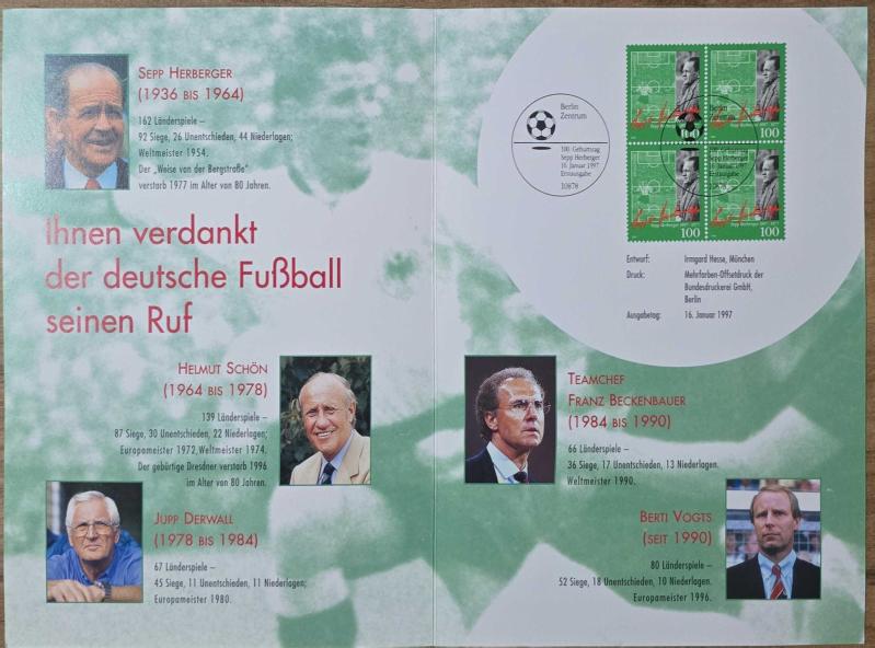 Almanya 1997 Futbol Antrenörü ve Oyuncu Sepp Herberger'in Doğumunun 100. Yıldönümü İlkgün Damgalı Hatıra Portföyü, en son 1 yıl önce güncellenmiştir.