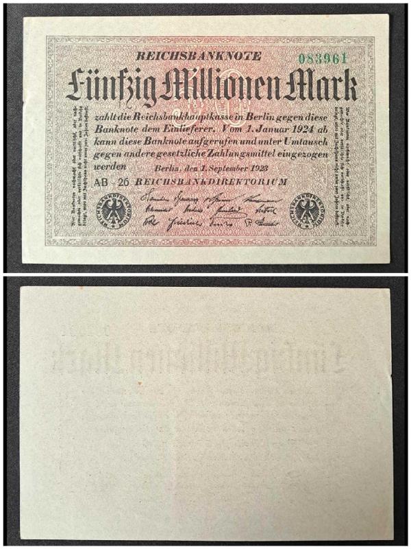 Almanya 50.000.000 Mark 1923 ÇA, bir ay önce satışa sunulmuştur.