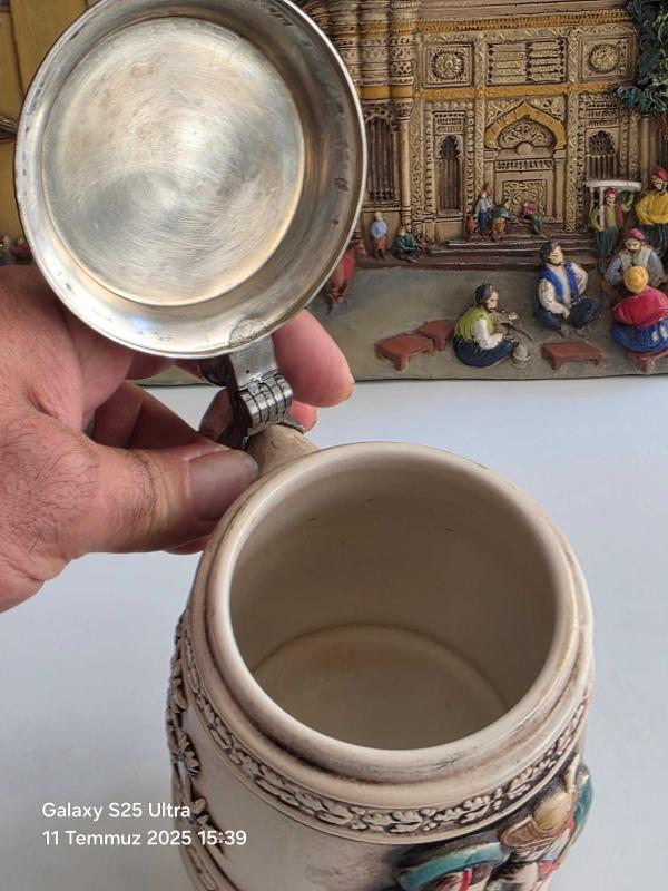 Almanya Beyer üretimi orijinal Damgalı Kabartma işçilikli Tankart porselen 14 cm başlıklı ürün, Antika-Koleksiyon, Hobi-Sanat > Seramik, Cam, Porselen Objeler > Mutfak > Sürahi, Testi, Karaf kategorisinde İkinci El olarak satışa sunulmuştur.