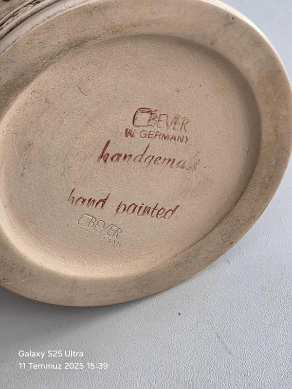 Almanya Beyer üretimi orijinal Damgalı Kabartma işçilikli Tankart porselen 14 cm başlıklı antika/koleksiyon objesi Avrupa menşe’lidir. 1940 sonrası dönemine aittir.