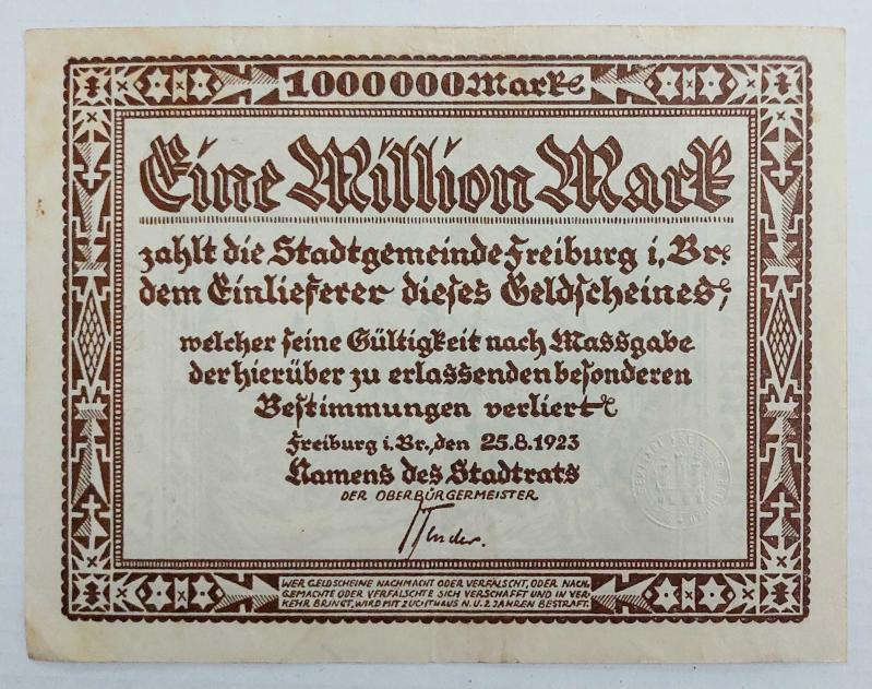 Almanya, Freiburg Şehri 1.000.000 Mark/Notgeld 1923. (ÇT)