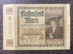Almanya İmparatorluğu 5 bin Mark 1922 Deutsches Reich 5000 Mark Reichsbanknote