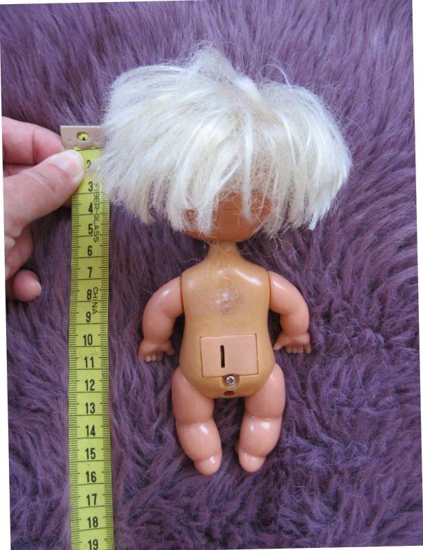 Almanya 1970'lerden sevimli küçük şeytan vintage sert plastik bebek (Kafası et, diğer vücut bölümleri sert plastikten). Yerden yüksekliği 15 cm. Başı, kolları ve ayakları hareketli. Gözleri yatınca kapanmıyor, karnındaki mekanizması çalışmıyor. Kırık veya hasara sahip değil. *** Fotoğrafta görülen ürün gönderilecektir *** (Fotolardaki dekor olarak kullanılan diğer objeler hariç)