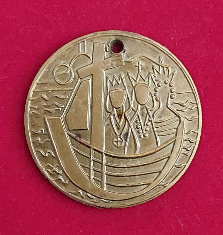 Almanya, Köln Uygulamalı Sanatlar Okulları Tarafından Verilen Hatıra AR Madalyonu. Çağdaş Kilise Sanatı Roma 1961/Köln. Aziz Ursula ve Papa Cyriacus'u Tasvir Etmektedir. Madalyon Sonradan Delinerek Kolye Olarak Kullanılmış. Çok Güzel Tasarımlı ve Çok Çok Nadir. Bronz/Gümüş Kaplama. (17,30 gr/37 mm), 15 gün önce satışa sunulmuştur.