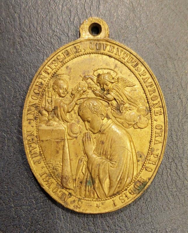 Almanya, Meryem Ana ve Aziz Aloysius (Gençlerin Koruyucusu) Temalı Hatıra Kolye-Madalyon Mükemmel Detaylı Bir İşçilikle Üretilmiştir. (Oval Tarzda) Pirinç/Kullanılmış-Patinalı. 1900'lerden. (43x36 mm), en son 3 gün önce güncellenmiştir.