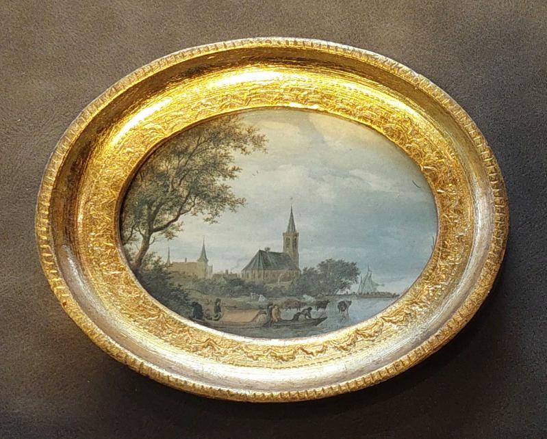 Almanya, Mini Eski Manzara Sanatı. "Balıkçı Tekneleri" Temalı Tablo. Salomon J. Van Ruysdael (1602-1670) İmzalı. Tıpkı Resim Basımıdır. Küçük Elips Çerçeveli (Camlı) Altın Varak Kaplamalı Ahşap. Duvara Monteye Uygundur. Almanya'da Üretilmiştir. (Dietrich-Am Entenpfuhl.) 1970'ler. Mükemmel Durumda. (12x10 cm) Nadir. başlıklı antika/koleksiyon objesi Avrupa menşe’lidir. 1960-1979 arası dönemine aittir.