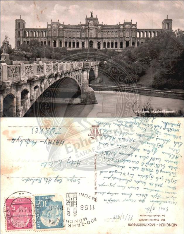 Almanya, Münih, Maximilianeum, Kartpostal, 1958: Tarihî yapı ve çevresini gösteren postadan geçmiş orijinal kartpostal., en son 3 ay önce güncellenmiştir.