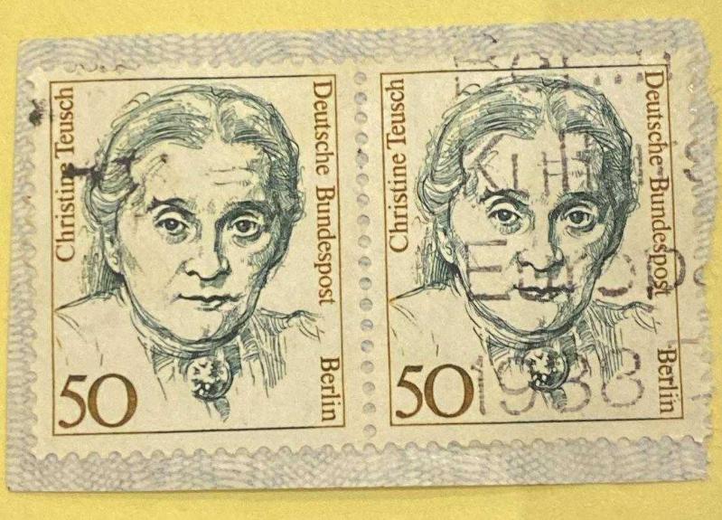 Almanya Pulu - Germany Stamp - Mektup Zarfından Kesilmiş / Postadan Geçmiş İkili Pul Filateli - Damgalı - CHRISTINE TEUSCH, 50 PARA - YABANCI PULLAR - NOSTALJİK DOĞUM GÜNÜ HEDİYESİ, en son 1 yıl önce güncellenmiştir.