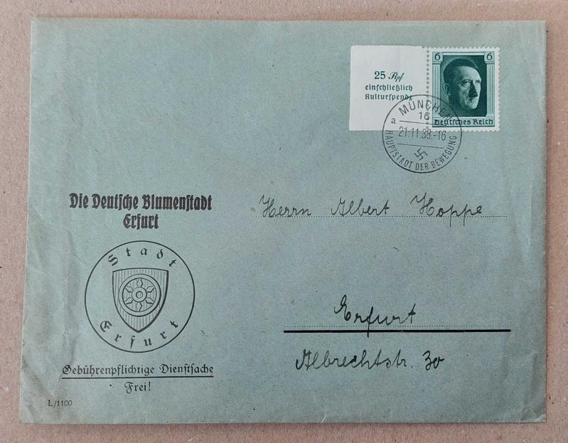 Almanya, Reich Dönemi. Hitler Pullu Mektup Zarfı 21.11.1938 Münih Tarihli ve Gamalı Haç Damgalı., 4 ay önce satışa sunulmuştur.