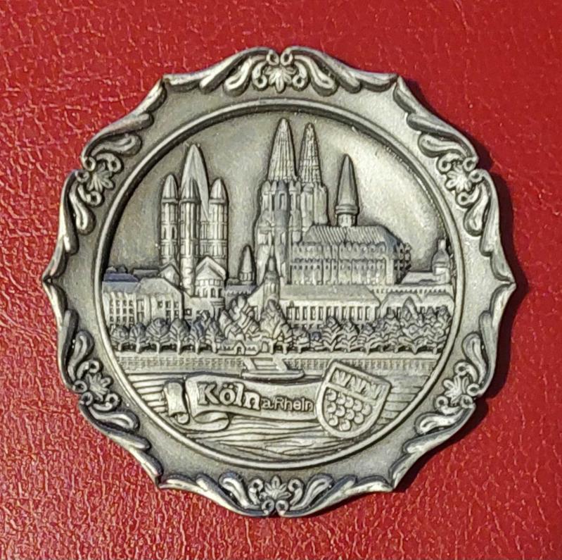 Almanya, Ren Nehri'nden Görünen Köln Katedrali (bulutlu hali) Temalı Minyatür Duvar Tabağı. Ayakta-Duvarda Sergilemeye Uygundur. Kalay/Metal. 1990'lar.
