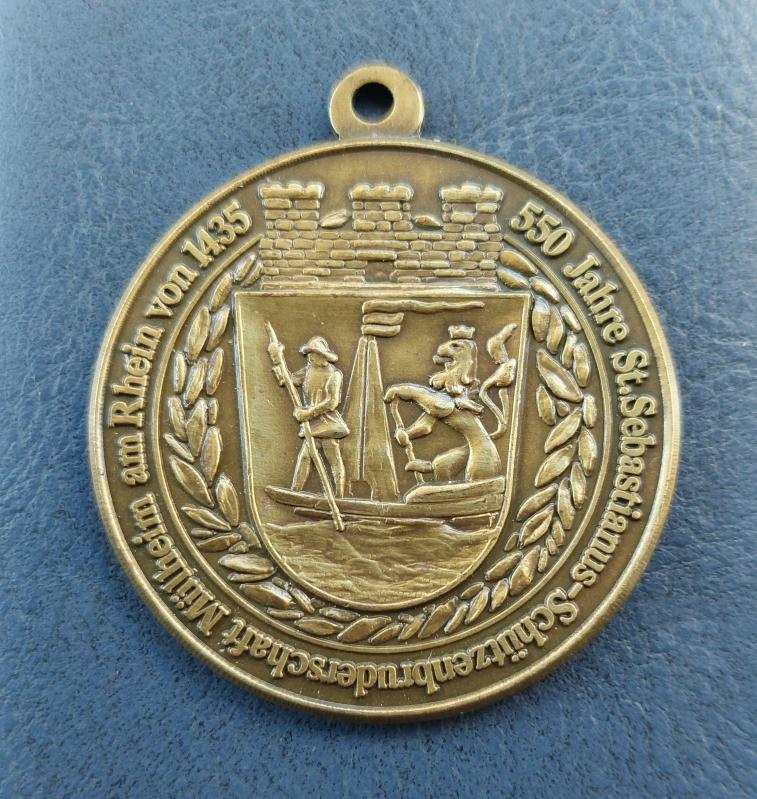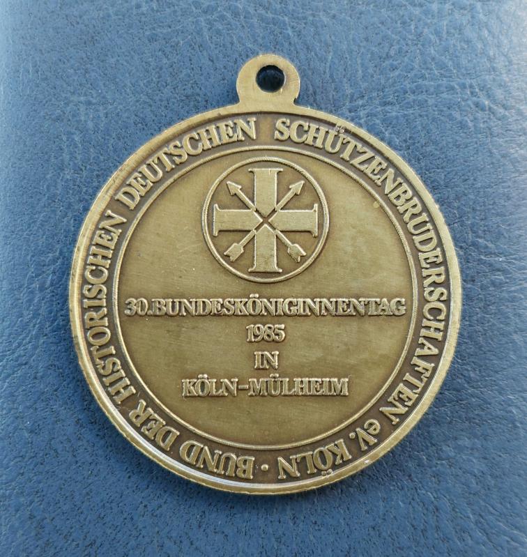 Almanya, Tarihi Alman Atıcılık Kardeşliği Federasyonu Mülheim-Köln "30. Federal Kraliçe Günü" Atıcılık Kulübü Etkinliği 1985. Ayrıca; 550. Aziz Sebastianus Yıldönümü Temalı Hatıra Madalyon (1453) Bronz/Cilalı.