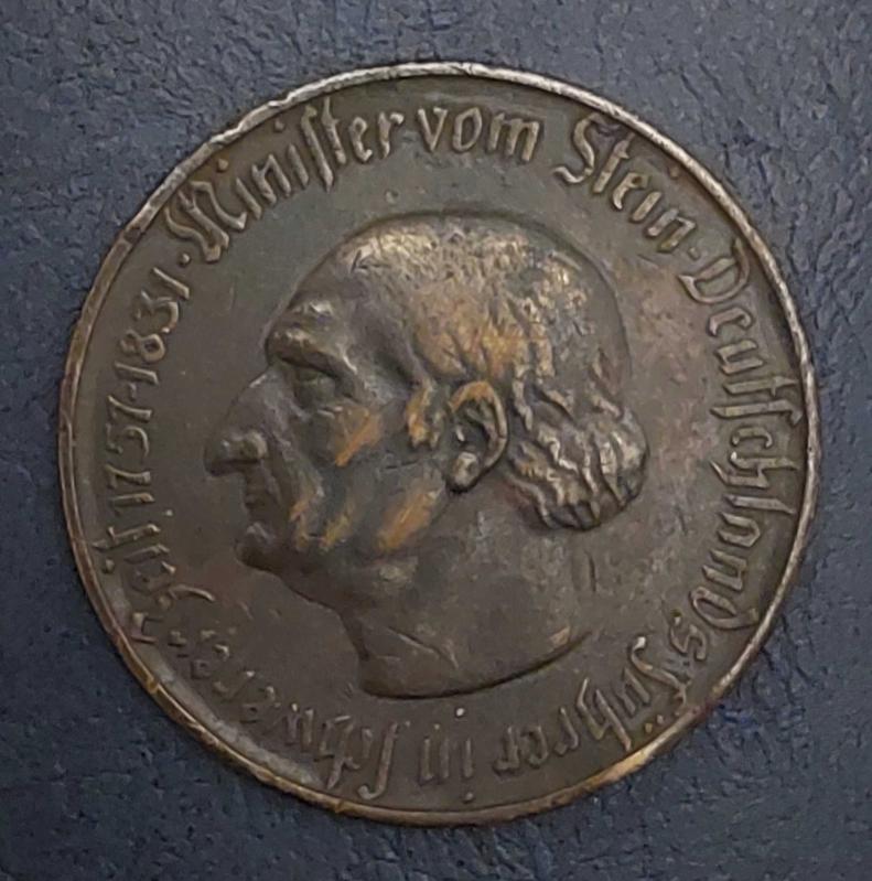 Almanya, Vestfalya Eyaleti (Notgeld) 10.000 Mark 1923. Ön-Arka Yüzünde: Şahlanan At ve Devlet Adamı Başkan/Baron Von Stein Temalı, Gotik Yazılı (Detaylı Harika İşçilik) Acil Durum Parası. Uzun Süre Kullanımda Kalmış Bu Madeni Para İyi Korunmuş ve Kulanıma Bağlı Kararması (Patinalı) Onu Daha Cazip Hale Getirmiştir. Bakır-Bronz (43 mm) Orijinal, Nadir.