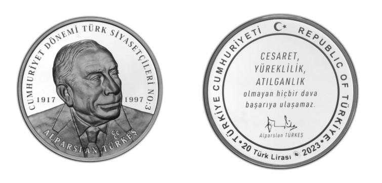 Alparslan Türkeş Cumhuriyet Dönemi Türk Siyasetçileri No.3 Hatıra Parası Gümüş (Sertifikalı) Darphane