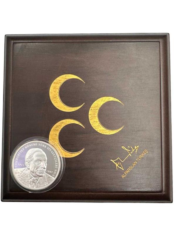 Alparslan Türkeş Cumhuriyet Dönemi Türk Siyasetçileri No.3 Hatıra Parası Gümüş (Sertifikalı-Kutulu) Darphane