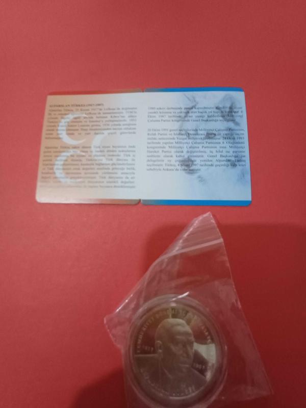 Alparslan Türkeş Hatıra Gümüş Para Cumhurlyet Dönemi Türk Siyasetçileri No:3 Çil 925 ayar 31.10 gr.Gümüş, 2 yıl önce satışa sunulmuştur.