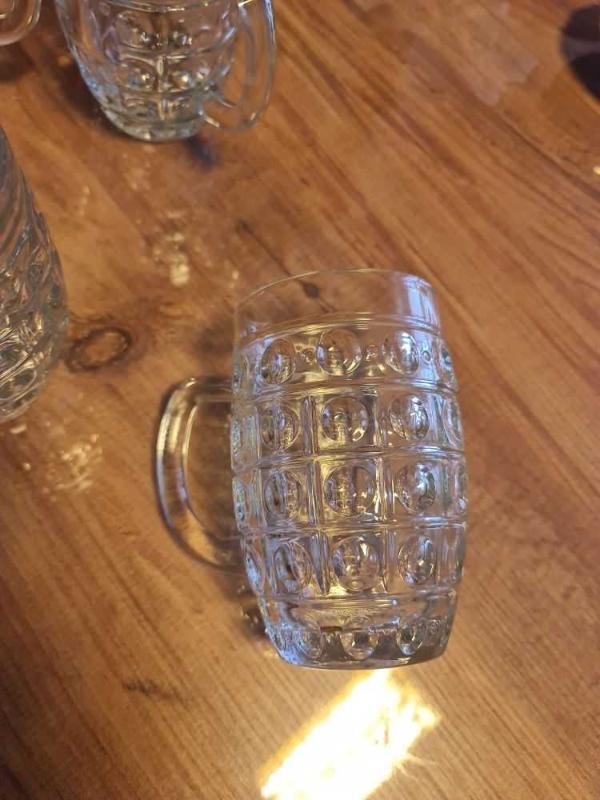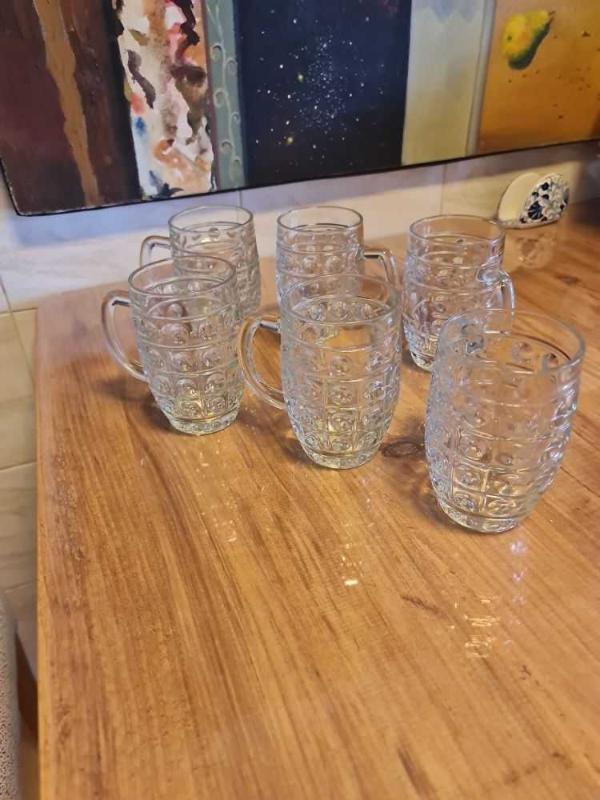 Altı adet kalın ağır sıfır vitrin ürünü eski bira bardağı