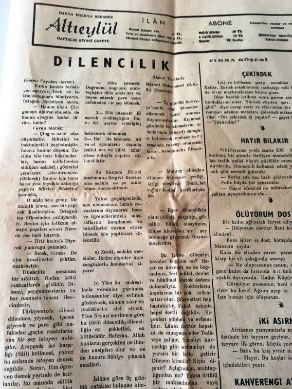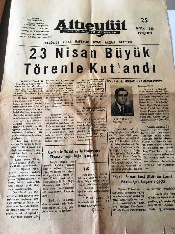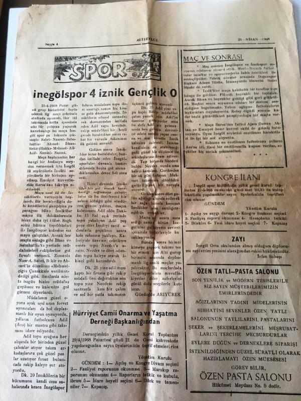 Kitap 1968 yılında [kısmet matbaası] yayınlanmıştır. 4 sayfadır. Altıeylül gazetesi-Balıkesir,yerel,taşra basını-Halk ve Halkla Beraber 25 Nisan 1968- 23 Nisan Büyük Törenle Kutlandı- Özdemir Yücel ve Arkadaşları Tiyatro Topluluğu İnegöl : Akyollu ve Demircioğlu - Erkek Sanat Enstitüsünün İzmit Gezisi Çok Başarılı Geçti -Tarihte Güreşçilerimiz - Haftanın Şarkısı- Dilencilik - İnegölspor 4 İznik Gençlik 0 - sahibi Akif Beceroğlu adlı eser Türkçe dilindedir.