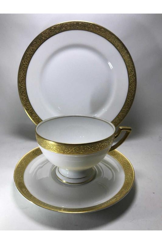Altın Şeritli Trio - Çay Kahve Takımı başlıklı antika/koleksiyon objesinin menşei belirtilmemiştir. Objenin ait olduğu dönem bilinmeketedir.