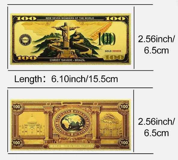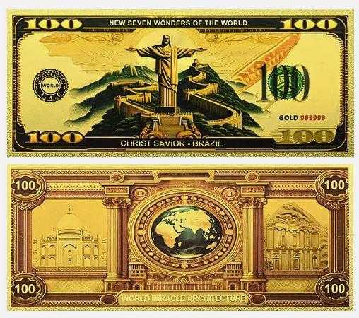 Altın Varak 100 Dolar, Dünyanın yedi Harikası serisi, Brazilya Kurtarıcı İsa, Koleksiyonluk Ölçüleri:155x65mm. Şeffaf föyde gönderilecektir.
