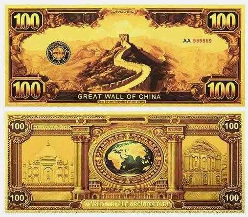 Altın Varak 100 Dolar, Dünyanın yedi Harikası serisi, Çin Seddi, Koleksiyonluk, 1 yıl önce satışa sunulmuştur.