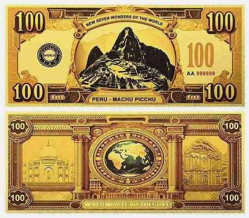 Altın Varak 100 Dolar, Dünyanın yedi Harikası serisi, Machu Picchu-inka antik şehri, Koleksiyonluk, 1 yıl önce satışa sunulmuştur.