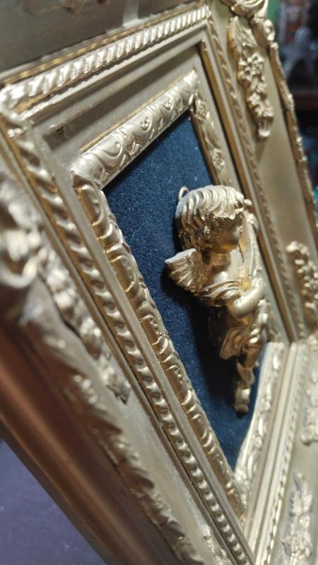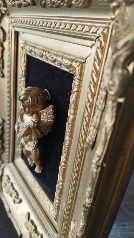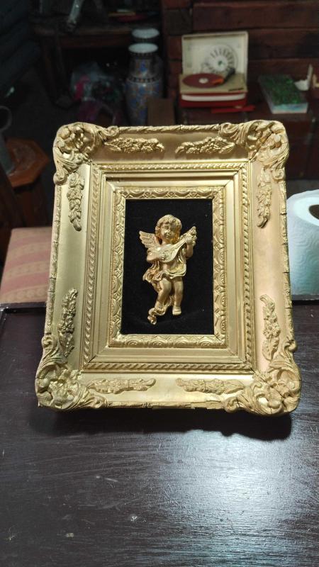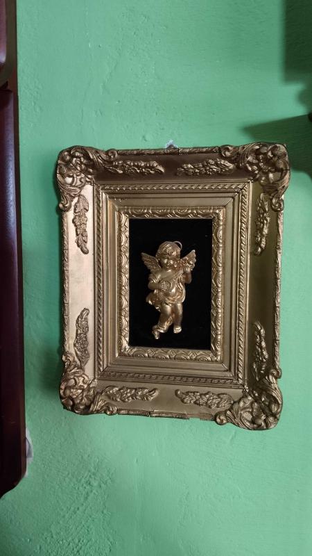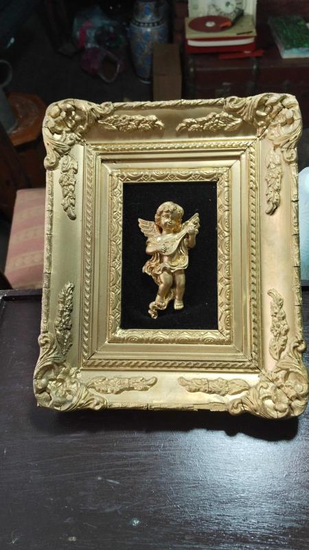 Altın varaklı melek biblolu tablo başlıklı antika/koleksiyon objesi Avrupa menşe’lidir. 1960-1979 arası dönemine aittir.