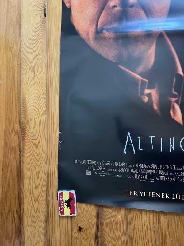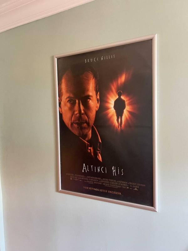 Bruce Willis’in başrolünde yer aldığı, M. Night Shyamalan imzalı kült gerilim filmi Altıncı His’in 1999 Türkiye gösterimine ait orijinal sinema afişidir. Ebatı 68x98 cm’dir. Afişin kondisyonu oldukça yüksek seviyededir. Kenarlarında çok hafif izler ve dikkatli bakıldığında bazı minik yüzey bükülmeleri görülse de genel olarak son derece iyi durumdadır. Ön yüzeyde herhangi bir yırtık, bant kalıntısı veya ciddi deformasyon bulunmamaktadır. Arka yüzü temizdir ve arşivlik bir görünüm sunar. Koleksiyonluk düzeyde, yıllara meydan okumuş sağlam bir örnektir. Not: Fotoğraflar arasında afişin çerçeve içerisindeki hali de yer almaktadır. Çerçeve satışa dahil değildir. Afiş, zarar görmeyecek şekilde özel afiş postüpü içinde rulo halde kargolanacaktır.